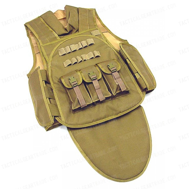 3 large magazine pouches and 12 shells holder on the front.
