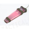Includes plastic sleeve with velcro backing and lanyard.